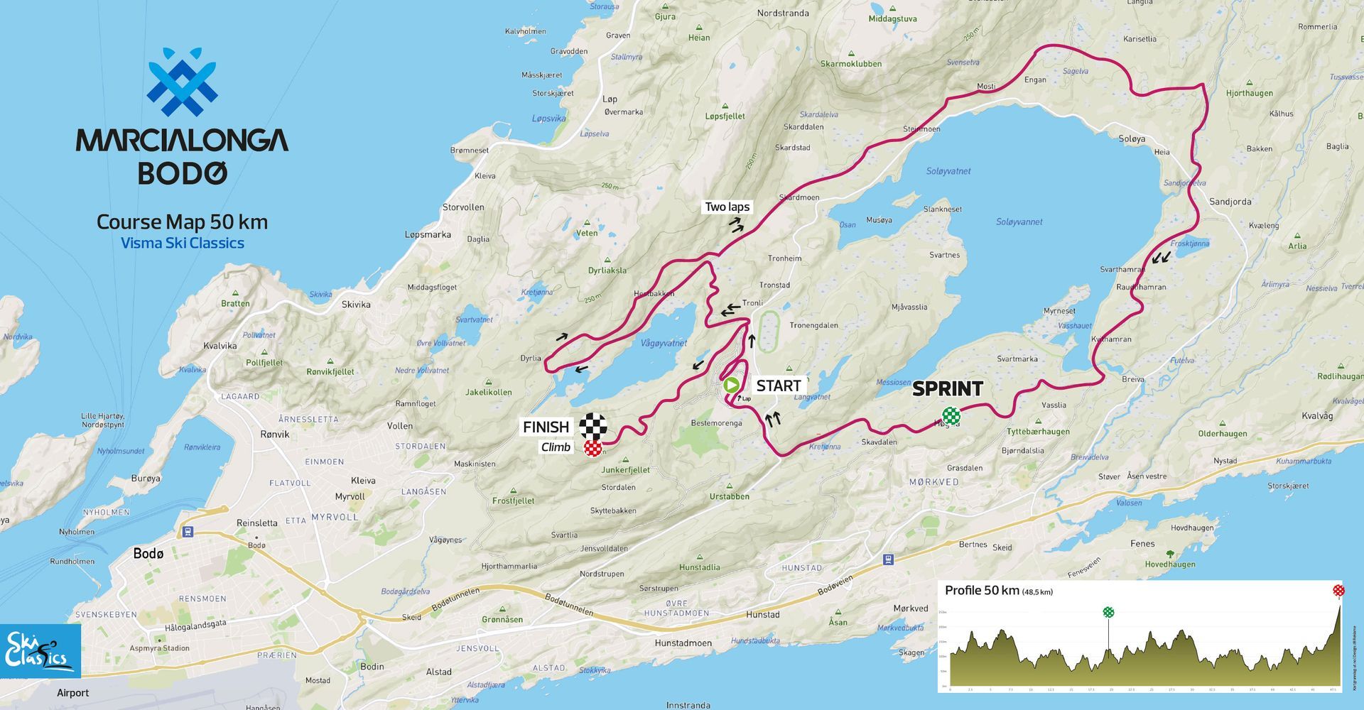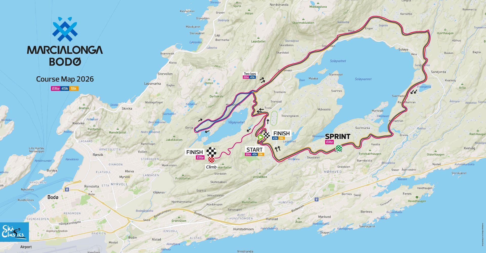 Start- og mål alle distanser er Bestemorenga, rett utenfor Bodø sentrum. Eliten har målgang på spektakulære Junkerfjellet. Løypa bukter seg gjennom Bodømarka, og er utformet for å være tilgjengelig for alle – fra den alminnelige skientusiast til eliteutøveren.